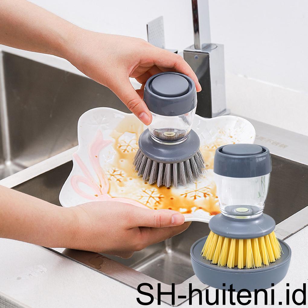 Mudah digunakan: Sikat pencuci piring dirancang dengan dispenser yang dapat digunakan untuk menyimpan pasokan pembersih panci.