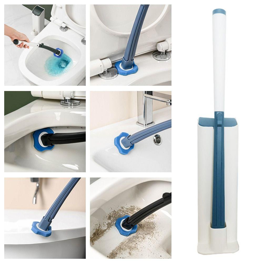 Sikat toilet sekali pakai dengan kepala sikat pembersih. Tekan tombol biru dapat dengan mudah diganti, tidak perlu disentuh, mudah menghemat masalah.