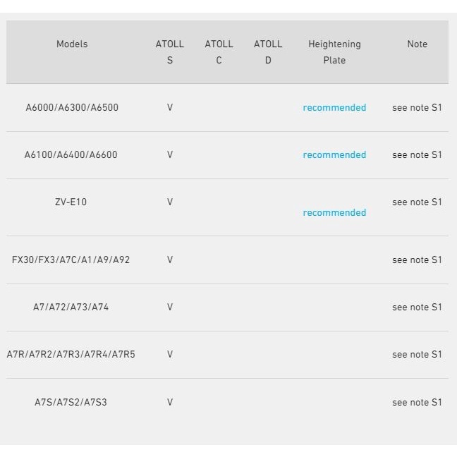 Daftar kompatibilitas kamera bisa lihat di link di bawah https://silencecorner.net/pages/atoll-compatible-camera-list