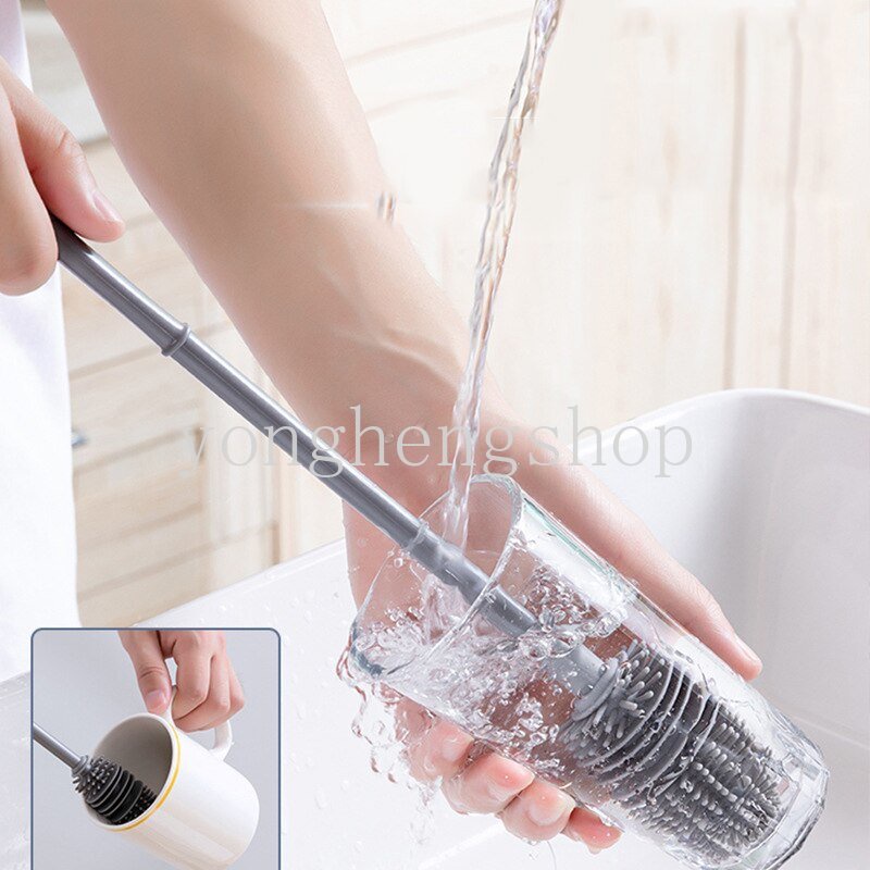 Perlengkapan Rumah > Alat Pemeliharaan Rumah > Sikat Pembersih > Silicone Cup Brush Gagang Panjang Sikat Pembersih Botol Susu Pembersih Botol Air Gelas Cangkir Cuci Scrubber Mug Teko Sikat Ada Sudut Mati Perlengkapan Pembersih Dapur