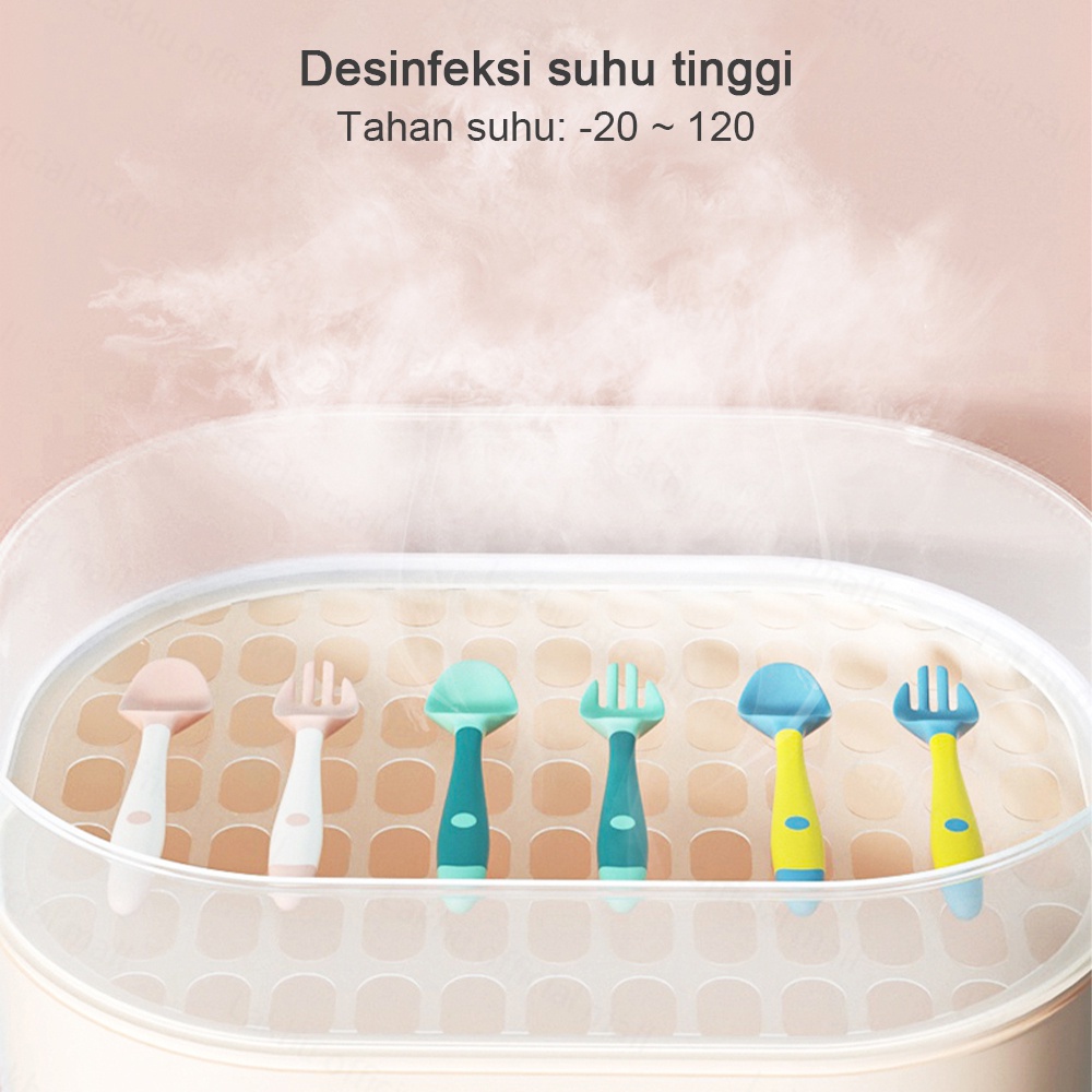 Fitur: 1.Sendok dan garpu bisa ditekuk 360°, cocok untuk bayi yang periode belajar makan 2.Kotak dengan sekat pemisah, lebih rapi dan bersih 3.Bahan PP kelas makanan(BPA Free),aman dan tidak berbau 4.Tahan suhu: -20 ~ 120℃