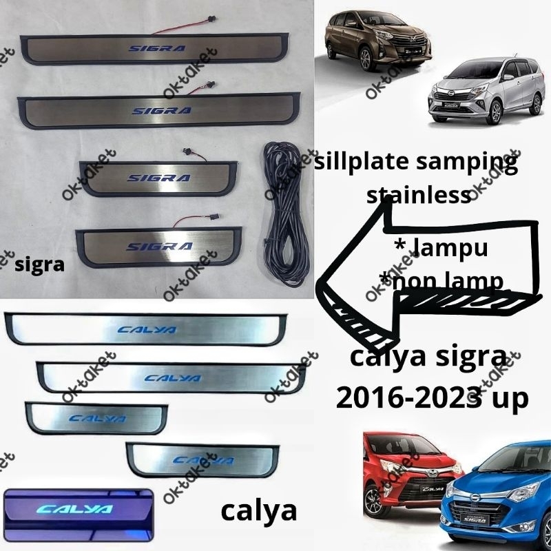 Detail Sillplate Samping mobil Calya Sigra 2016 2018 2020 2023 Stainless Lampu & Non lamp