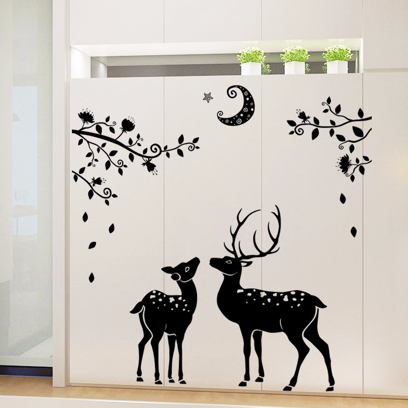 Detail Siluet Rusa Deer SK9081 - Wallstiker Dinding Cafe Kamar Tidur Anak Wall Sticker Aesthetic