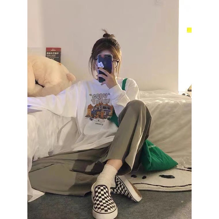 Silver fox beludru American retro sweater wanita musim gugur dan musim dingin desain berkualitas tinggi kebesaran siswa leher bulat menebal atas tren