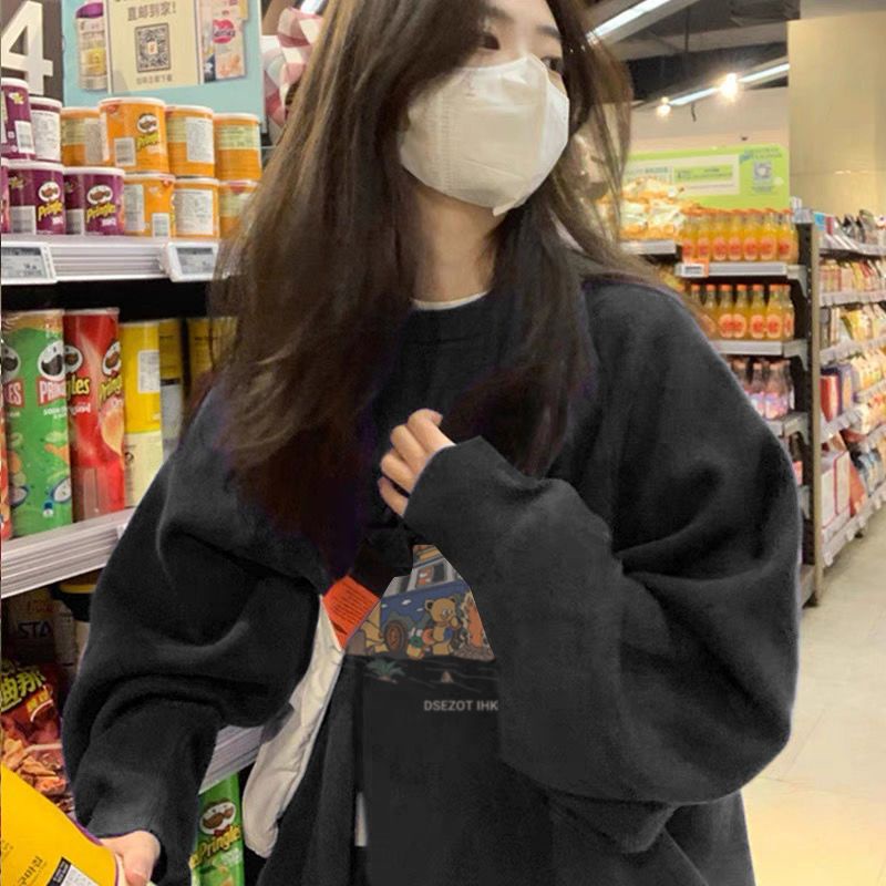 Pakaian Wanita > Hoodie & Sweatshirt > Sweatshirt > Silver fox beludru American retro sweater wanita musim gugur dan musim dingin desain berkualitas tinggi kebesaran siswa leher bulat menebal atas tren