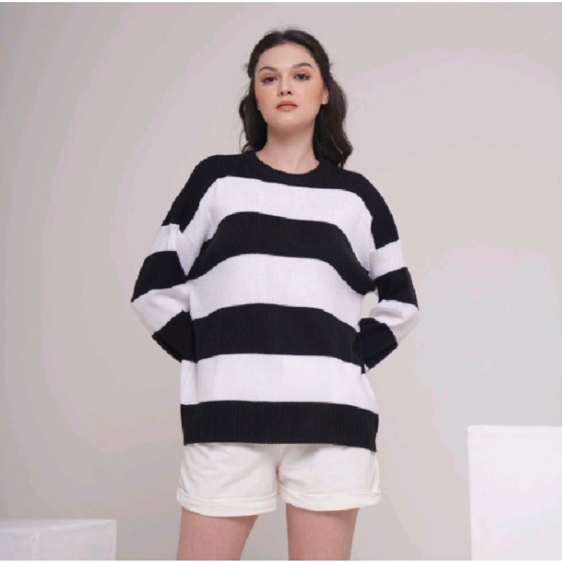 Video perkenalan produk SILVIA SWEATER RAJUT OVERSIZE MOTIF GARIS. Sumber: Shopee.