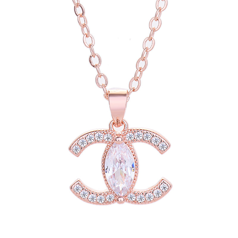 Aksesoris Fashion > Kalung > Rantai & Link > Simulasi Zirkonal Perak Kalung Jepang dan Korea Selatan Temperamen Perempuan Madu Mata C Surat Pendant Perhiasan Mikro-warna