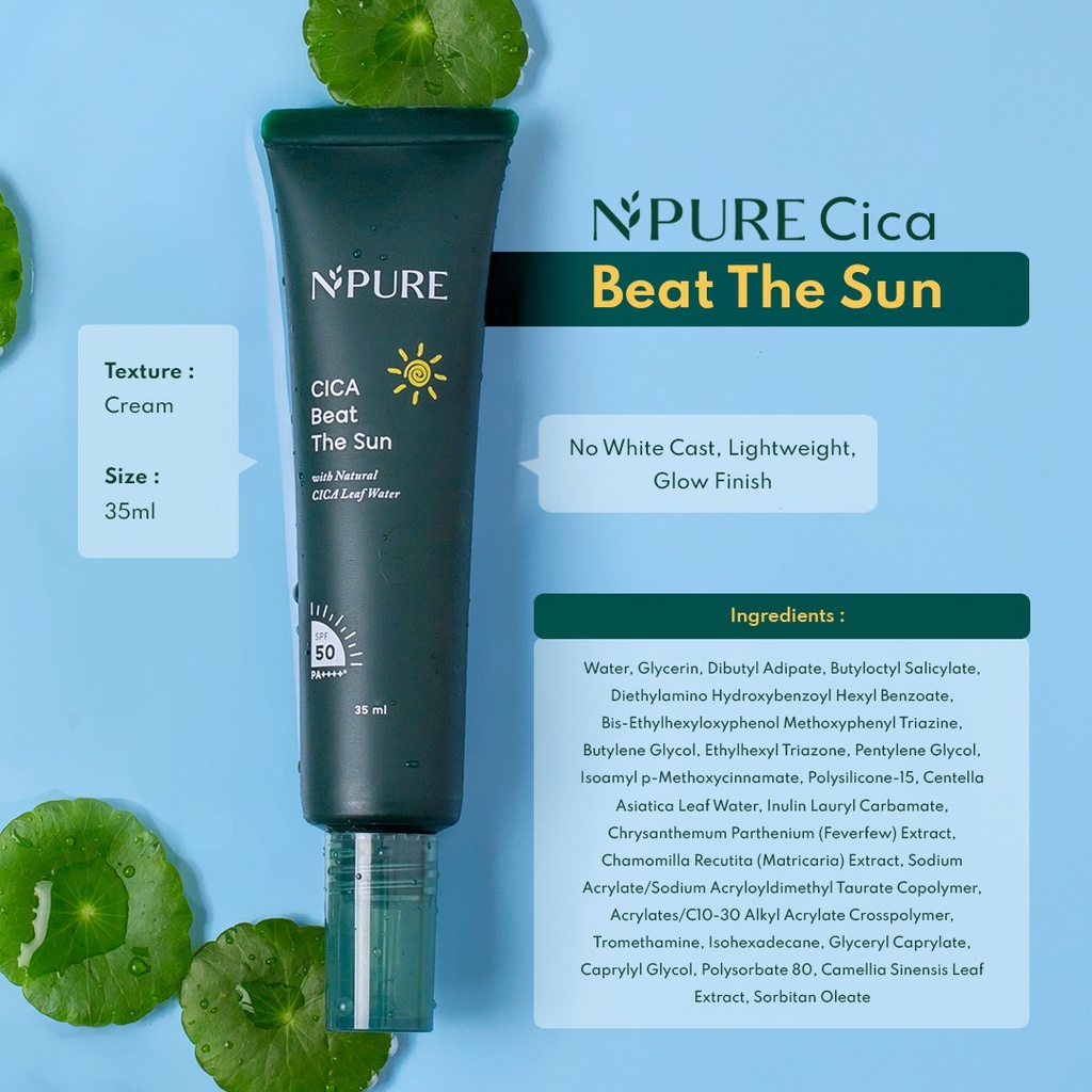 N'Pure Cica Centella Acne Care Series, terdiri dari: - Face Foam Centella Asiatica, pembersih wajah dari sisa kotoran sehingga kulit tampak cerah, halus dan segar. - Face Toner Centella Asiatica, membantu membersihkan wajah dari sisa kotoran, menyeimbangkan PH wajah, mencerahkan kulit wajah, merawat kulit berjerawat serta membuat kulit terasa segar, lembut dan lembab. - Essence, memberikan kelembaban pada kulit wajah, menghidrasi kulit, merawat kulit berjerawat, membuat kulit halus dan lembut. - Cica Clear Pad adalah kapas exfoliasi lembut yang mudah digunakan, yang berfungsi untuk membersihkan sel kulit mati secara efektif, mengatasi permasalahan kulit kusam, dan menjadikan kulitmu lebih lembut dan lebih cerah. - Day Cream Centella Asiatica membantu merawat iritasi pada kulit, membantu membuat kulit tampak lebih cerah, melembabkan dan merawat kehalusan kulit, serta membantu melindungi kulit dari paparan sinar matahari. - Night Cream Centella Asiatica berfungsi memberikan kelembaban, merawat kehalusan kulit, dan membuat kulit tampak lebih cerah serta merawat kulit yang berjerawat. Night cream ini memiliki tekstur yang ringan, dan bisa dijadikan sleeping mask.