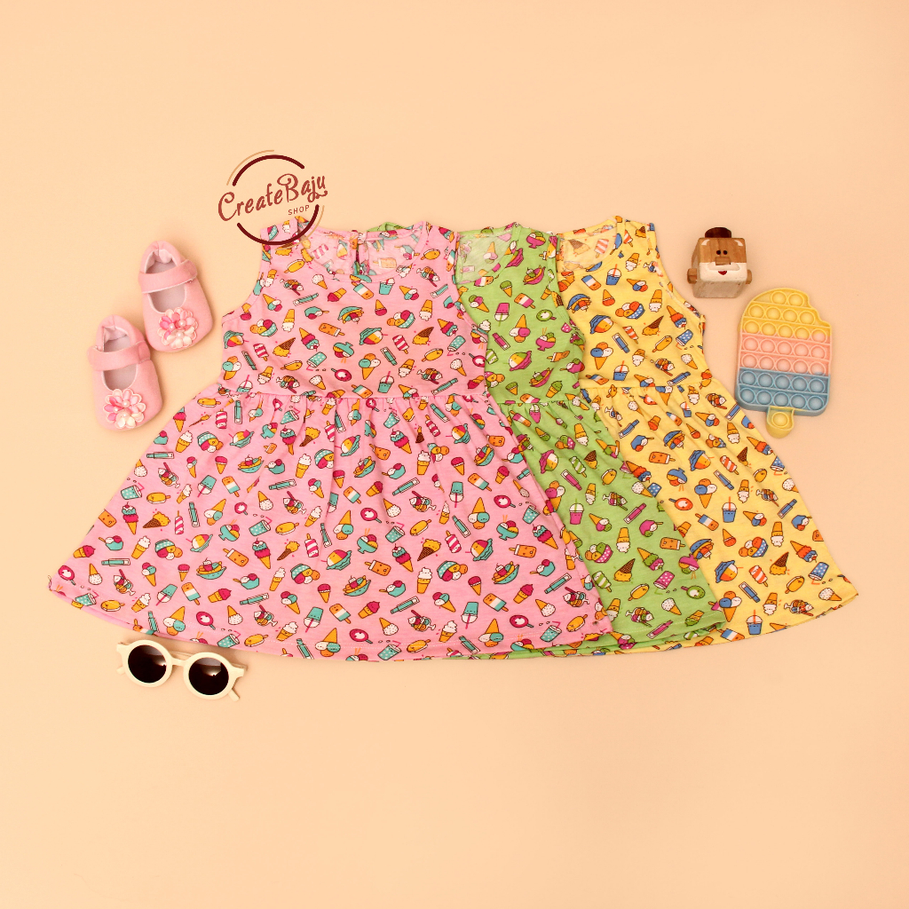 SINGLE DASTER/SINGLET DRESS/DRESS SINGLET ANAK CEWEK PRINTING ICE CREAM 1-2 TAHUN DRESS ANAK PEREMPUAN TERLARIS