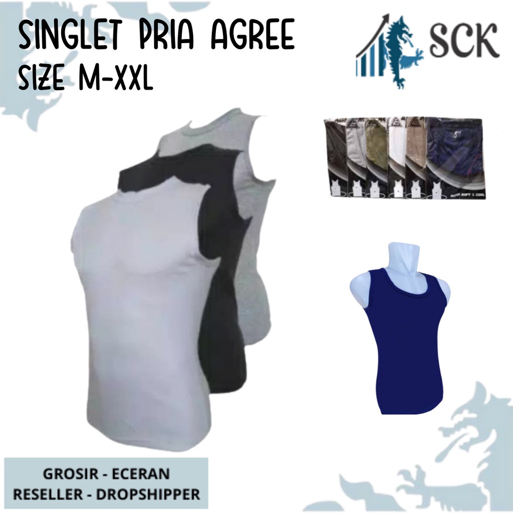 Detail Singlet Pria AGREE 6 WARNA / Kaos Dalam DEWASA / Pakaian Dalam Cowok - sckmenwear GROSIR