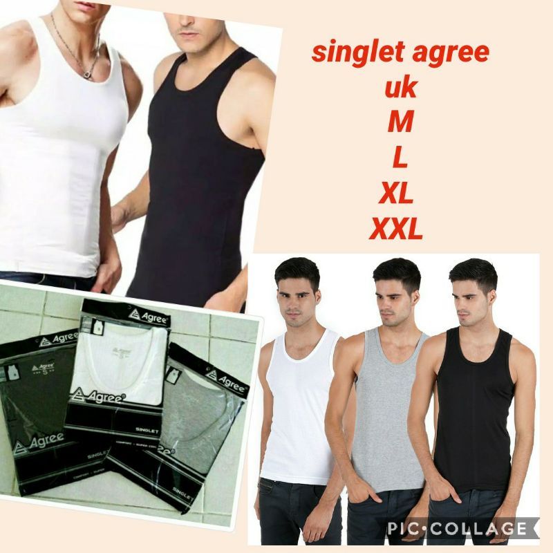 TIPE : SINGLET PRIA AGREE KRAH : SESUAI DENGAN GAMBAR PRODUK BAHAN : 100% COTTON WARNA : PUTIH , ABU-ABU, HITAM , UKURAN : M, L, XL, XXL