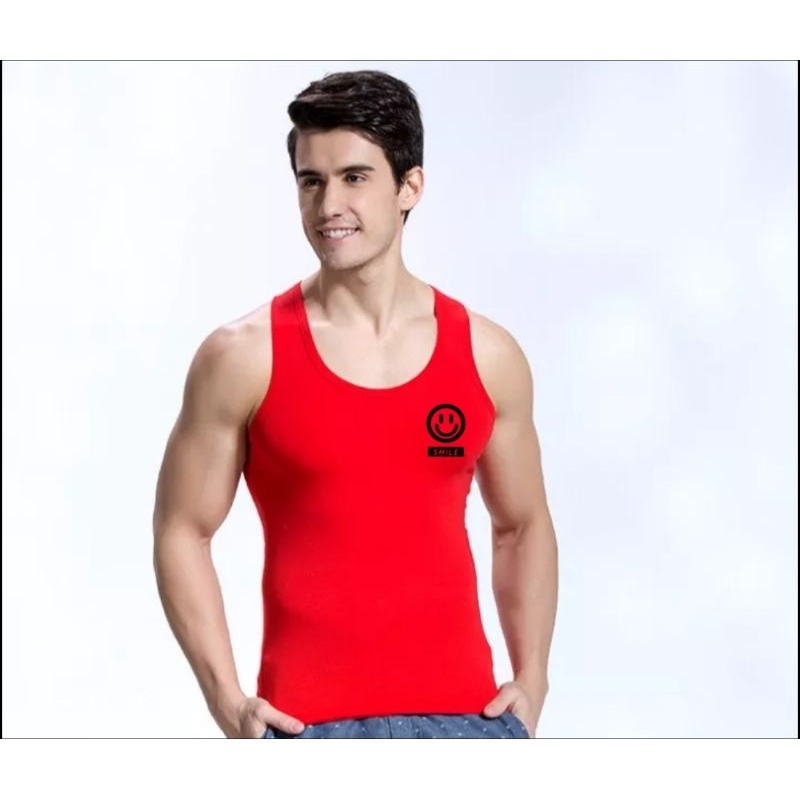 Singlet Pria Smile Bulat Atasan Lengan Pendek Logo Bisa Unisex Oblong Distro Dalaman Kaos Motif Tulisan Logo Cutting DTF Fashion Man Kos COD