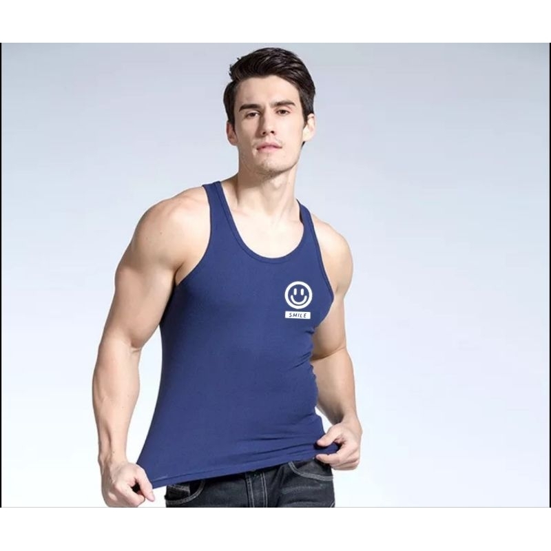 Detail Singlet Pria Smile Bulat Atasan Lengan Pendek Logo Bisa Unisex Oblong Distro Dalaman Kaos Motif Tulisan Logo Cutting DTF Fashion Man Kos COD