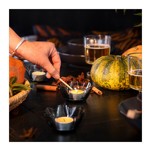 9 Jenis lilin beraroma : - beri/merah (Stortskon) = buah beri, daun hijau dan violet. - rumput segar/hijau muda (Hedersam) = rumput yang baru dipotong dan rempah pedas - hutan skandinavia/putih (Adlad) = aroma hutan dan amber dengan sentuhan sitrus dan cypress - api unggun/abu-abu (Enstaka) = Aroma tanah dan berasap dengan nada manis - labu berbumbu/oranye (Aspskog) = Nuansa hangat dan pedas dengan aroma labu dan pai - melati/merah muda (Lugnare) = Aroma bunga melati, pir, jahe, dan bunga bakung - jeruk bali & mawar/merah muda pucat (Adelsyren) = Aroma limau gedang dan mawar yang segar dan berenergi - udara pegunungan/toska (Parontrad) = Aroma jeruk dan cedar yang segar - vanila/krem muda (Jamlik) = Aroma manis vanili dan susu hangat dengan sedikit aroma kelapa