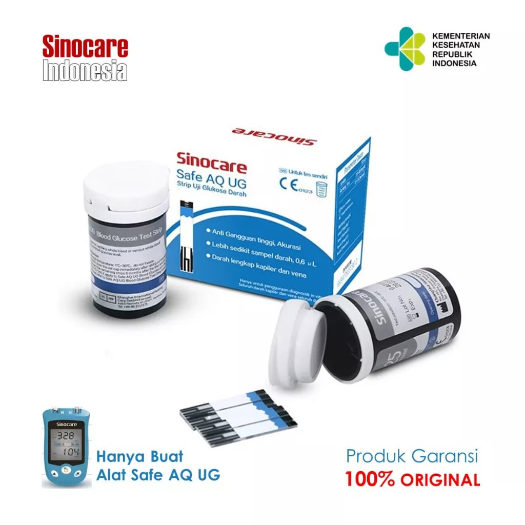 - Isi 50 strip - Hanya memerlukan 0.6 µL sampel darah - Hasil tes cepat dalam 5 detik - Hanya bisa digunakan di alat tes Sinocare Safe AQ UG / Sinocare EA-12 Exp. 2024