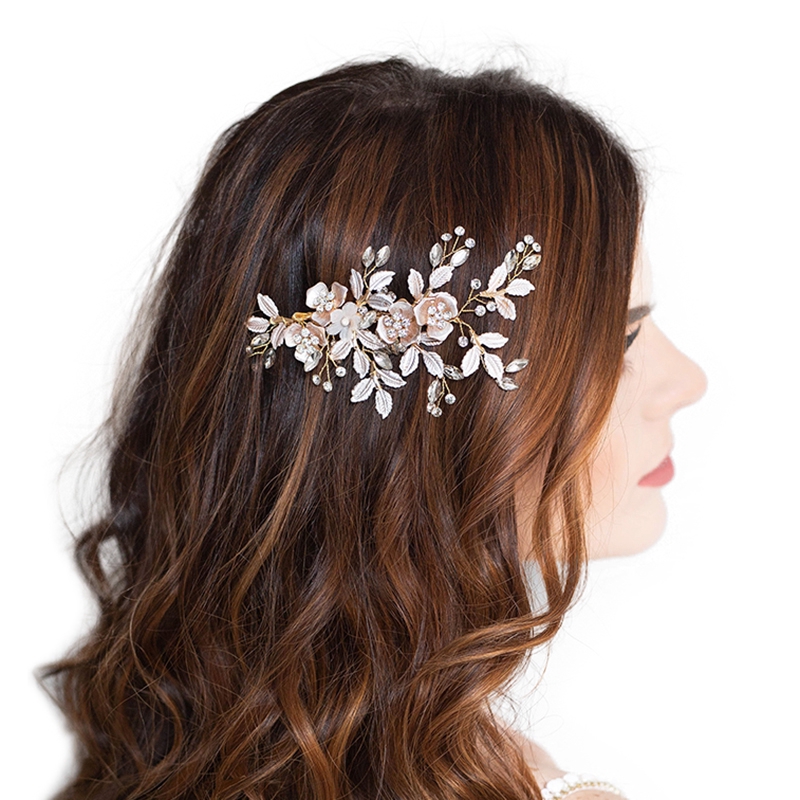 Detail Sirkam Desain Daun Rose Gold untuk Aksesoris Rambut Pengantin Wanita