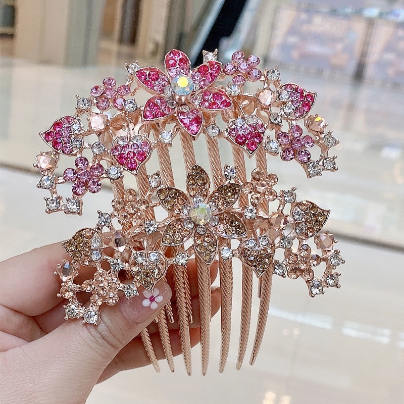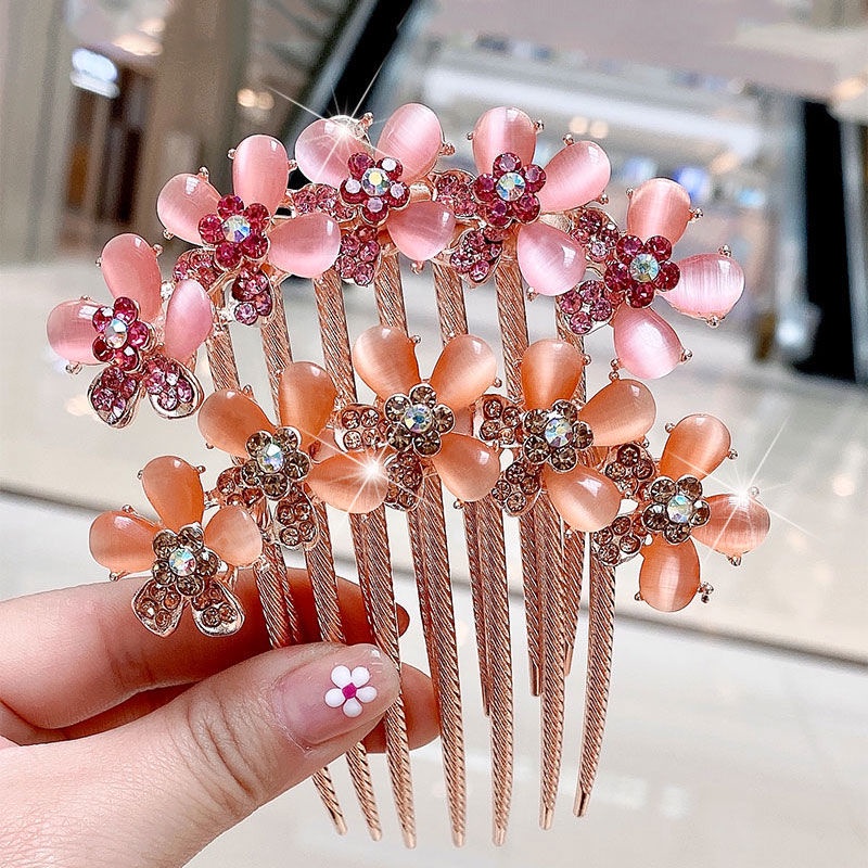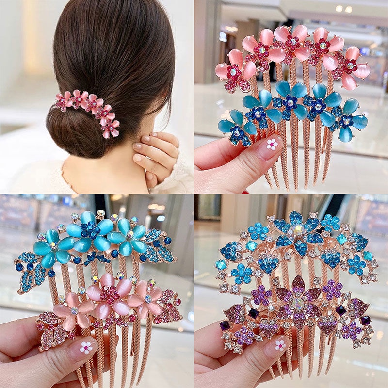 sirkam rambut wanita gigi 7 motif baru elegan premium permata zirkon kombinasi batu mata kucing original import