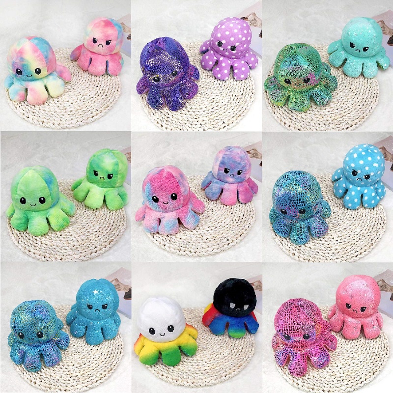 Tonjol: Tonjolkan: Gurita Dua Sisi Mainan Mewah Reversibel Mainan Lembut Sopur Sopur Binatang yang Diisi Binatang Hadiah Anak-anak Hadiah