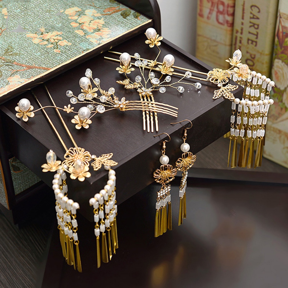 Aksesoris Fashion > Aksesoris Rambut > Hiasan Kepala, Tiara & Mahkota Bunga > Sisir Jepit Rambut Model Mahkota Aksen Mutiara Gaya Cina Kuno Klasik Untuk Aksesoris Pengantin