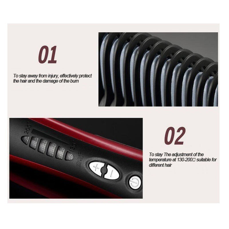 Amazing Straight Hair Styler-A digital hot air brush comb which can make your hair smoothly and straightly within 2 minutes no matter how fuzzy or tangling your hair is. So it is can be used as a hair straightener. High quality material makes it much safer and more durable for daily use-Anion Maintainence Damage-free. The Conductor Part is Made of Tourmalin Ceramic with Anti-static. Technology which Releases Anion and Maintains Healthy Hair and Reduces the Damages.There are 23 iron comb teeth on the ceramic panel you do not need to worry that the teeth will fall off or crack off. Smart Design meets different needs of hairstyle-6 Temperature Grades Selection Suitable for Different Hair Types. With Adjustable Heating Level(130 -200 ) and Working Under Contastant Temperature this Hair Straightener Reaches the Selected Heat in 30 Seconds and Archieves Desired Results Quickly. Rating Power: 29 Watts Rating frequency: 50 Hz 360 degree angle free swivel cord with hang. Tourmaline Ceramic flats:quick and last long straight with Anion theory. High Quality Heat insulation flats: protect you from getting hurt. 20 heating layers at least each layer seems a straightener separately. Quick styling for your daily busy life also can be used as curler.