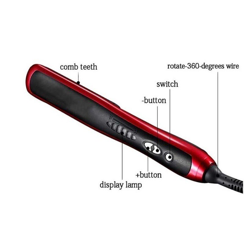Amazing Straight Hair Styler-A digital hot air brush comb which can make your hair smoothly and straightly within 2 minutes no matter how fuzzy or tangling your hair is. So it is can be used as a hair straightener. High quality material makes it much safer and more durable for daily use-Anion Maintainence Damage-free. The Conductor Part is Made of Tourmalin Ceramic with Anti-static. Technology which Releases Anion and Maintains Healthy Hair and Reduces the Damages.There are 23 iron comb teeth on the ceramic panel you do not need to worry that the teeth will fall off or crack off. Smart Design meets different needs of hairstyle-6 Temperature Grades Selection Suitable for Different Hair Types. With Adjustable Heating Level(130 -200 ) and Working Under Contastant Temperature this Hair Straightener Reaches the Selected Heat in 30 Seconds and Archieves Desired Results Quickly. Rating Power: 29 Watts Rating frequency: 50 Hz 360 degree angle free swivel cord with hang. Tourmaline Ceramic flats:quick and last long straight with Anion theory. High Quality Heat insulation flats: protect you from getting hurt. 20 heating layers at least each layer seems a straightener separately. Quick styling for your daily busy life also can be used as curler.