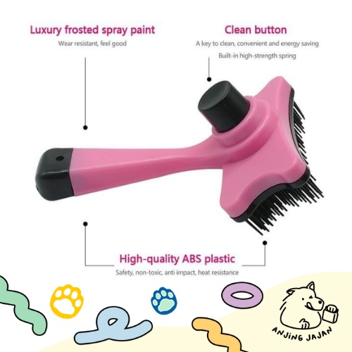 Sisir Anjing & Kucing dengan desain yang compact dan memudahkan owner untuk membersihkan bulu-bulu. Memiliki fitur membersihkan bulu yang melengket di sisir hanya dengan sekali klik tombol.