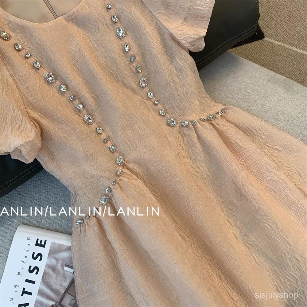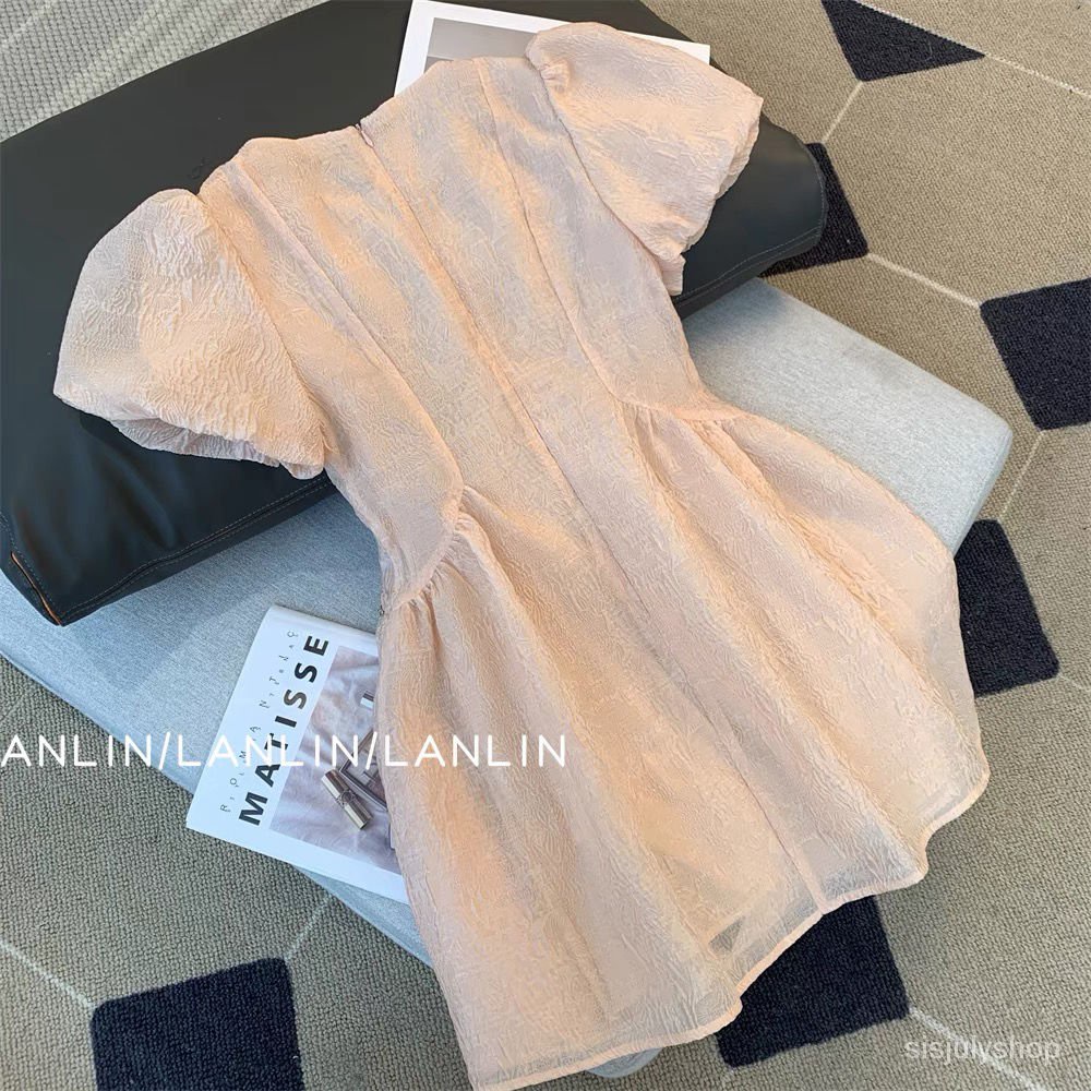 #Sisjuly# Gaun angin dupa kecil wanita baru rok lengan gelembung tipis pinggang Prancis wanita baru