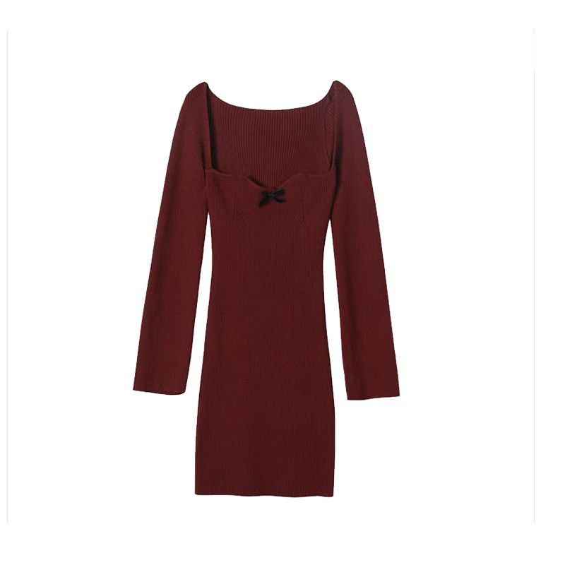 Detail #Sisjuly# Gaun wanita baru Natal Prancis leher persegi Prancis leher murni keinginan bawah lengan pa