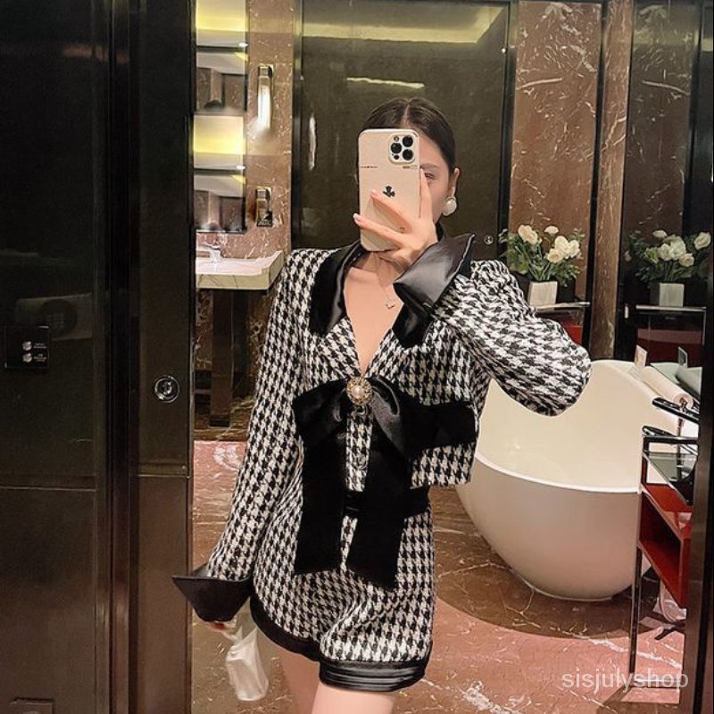 #Sisjuly# Jaket pendek wanita dengan celana pendek kaki lebar setelan wewangian kecil yang modis