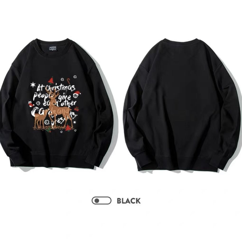 Detail #Sisjuly# Kaus Natal Wanita Hijau Tua Burgundy Tampilkan Kaus Longgar Tebal Tebal Cetak Rusa Putih