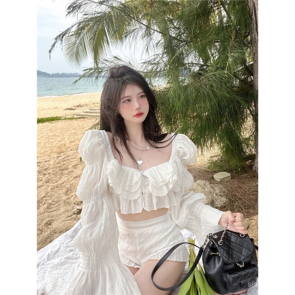 Detail #Sisjuly# Kemeja mengacak-acak wanita temperamen kerah persegi kemeja lengan panjang musim semi dan