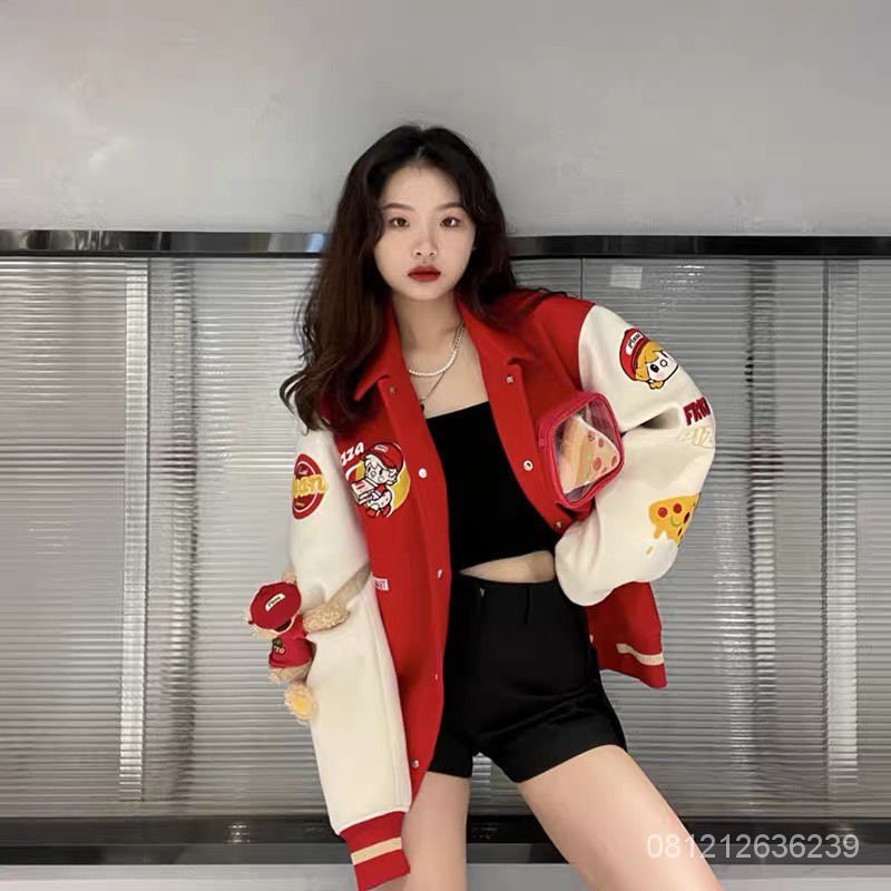 Detail #Sisjuly# Seragam baseball Amerika merah wanita yang baru, mantel lengan terbuka boneka.
