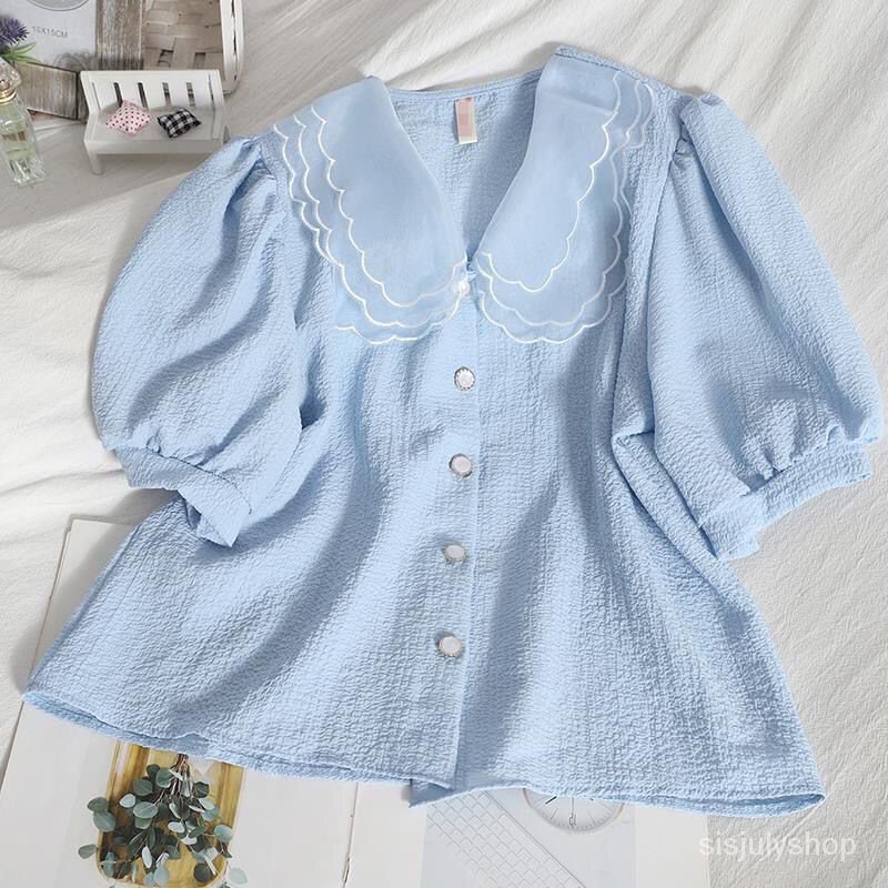 Detail # Sisjuly # Wanita Jahitan Lapisan Renda Kerah Mahasiswa Atasan Musim Semi Dan Musim Panas Baru Kusu