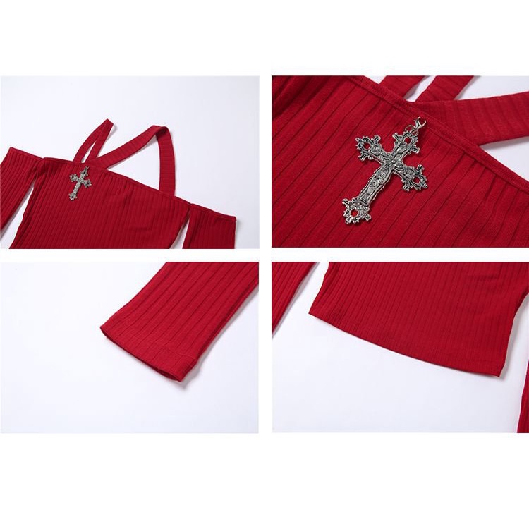 Detail #Sisjuly# Warna Polos Wanita Sabrina Lengan Panjang Kaos Rajut Wanita Atasan Potong Halter Ramping