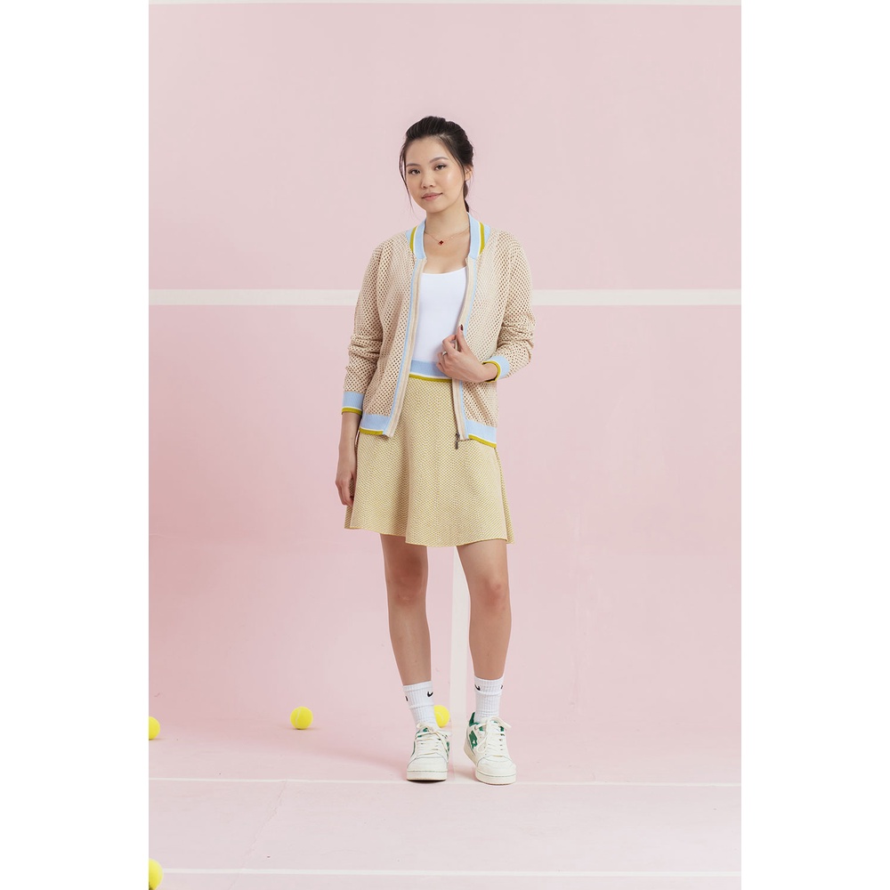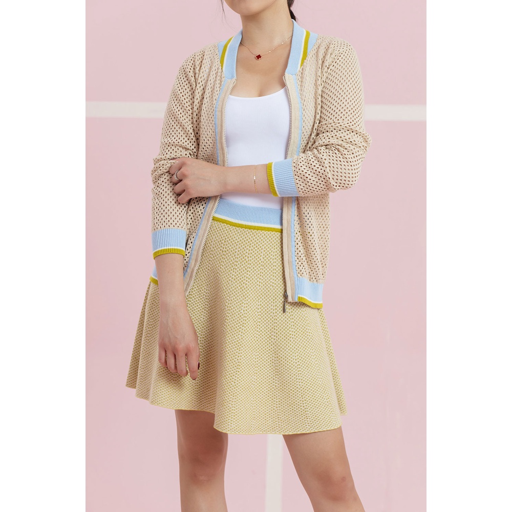 JACKET ONLY ! Light and breezy jacket with mesh like textured knit with contrasting collar, sleeves and hems colors
