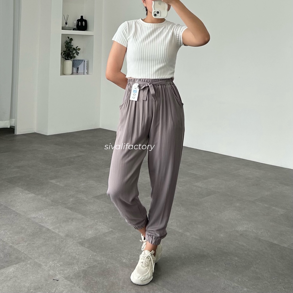Detail SIVALI Celana Jogger Rayon Wanita Loose Cullote Pants Homewear 002