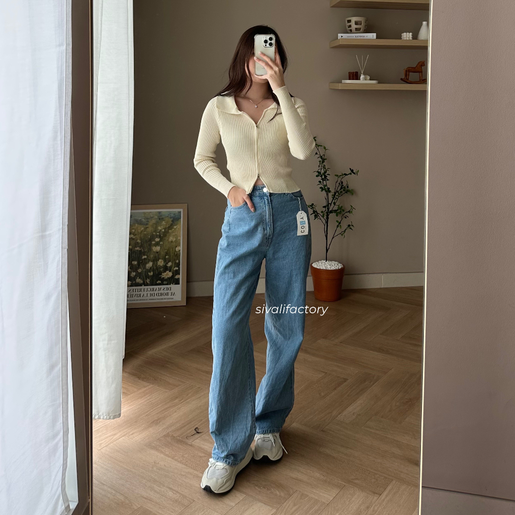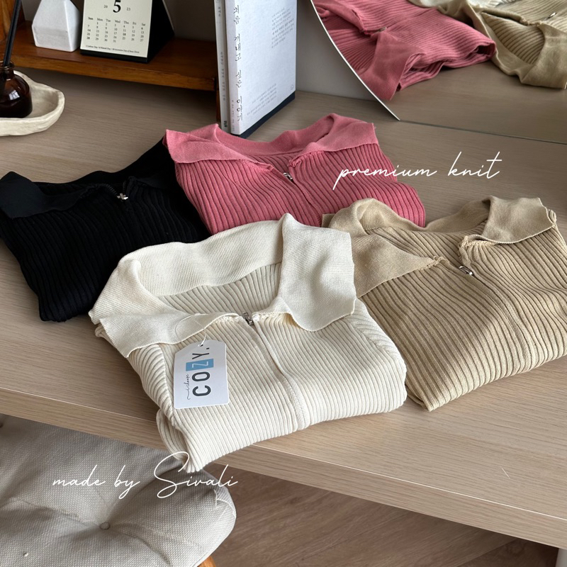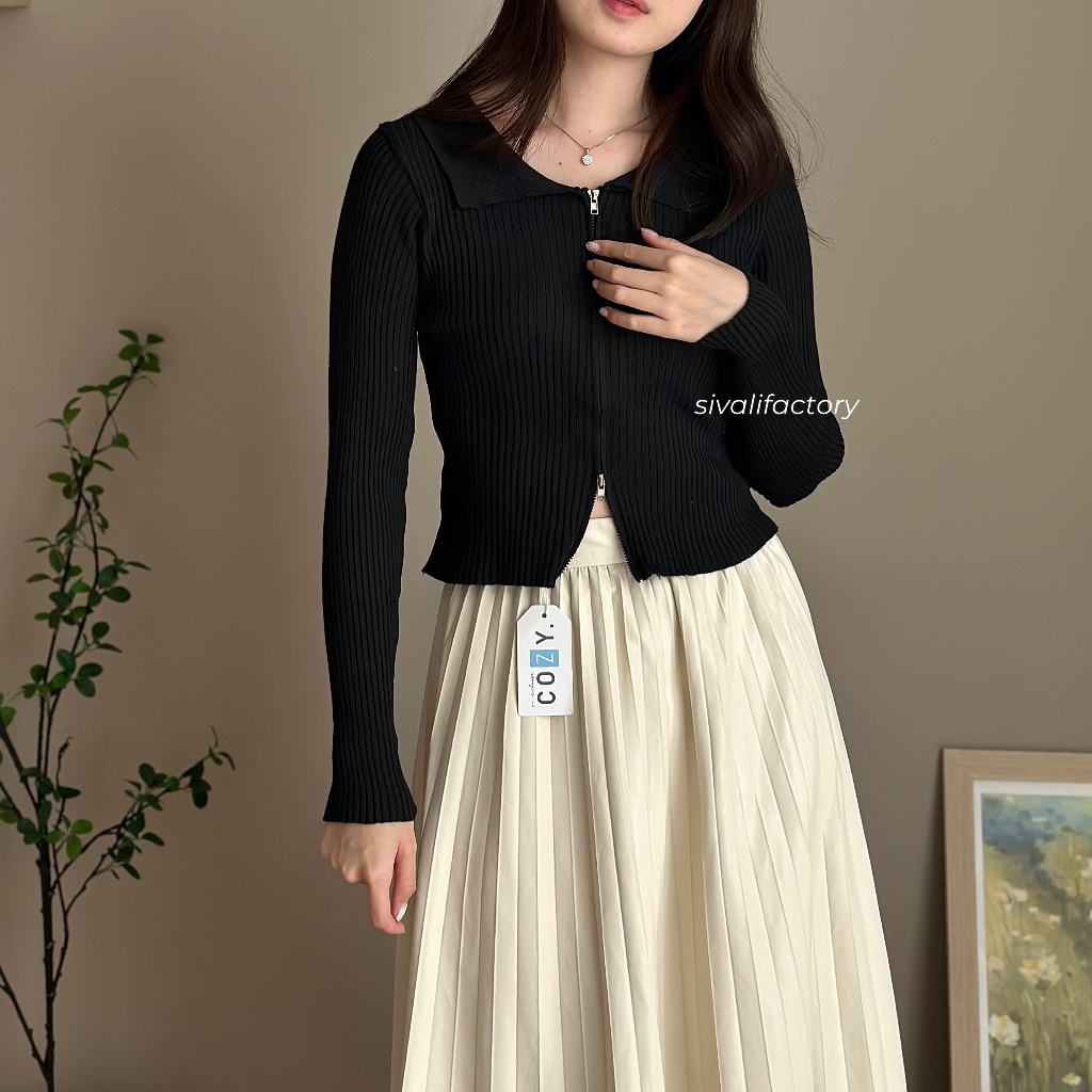 Detail SIVALI Jiyeon Zip Up Knit - Baju Wanita Rajut Zipper Lengan Panjang - Atasan Wanita