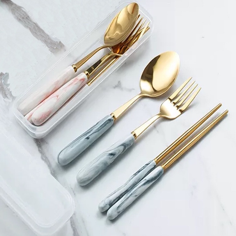 Set Sendok Garpu Sumpit Set Marble Korea Alat Makan Travel Set Alat Makan Marble