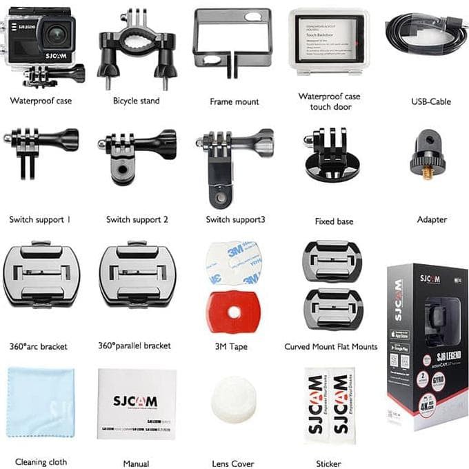 ISI PAKET : 1 x SJ6 Legend Action Cam 1 x Waterproof Housing 1 x Bicycle Stand 1 x Frame Mount 1 x Back Touch Door 1 x Mini USB Cable 1 x Switch Mount A 1 x Switch Mount B 1 x Switch Mount C 1 x Vertical Fixed Base 1 x Universal 1/4 Tripod Adapter 1 x 360Arc Bracket 1 x 360Parallel Bracket 2 x 3M Adhesive Tape 1 x Curved Mount Flat Mount 1 x Cleaning Cloth 1 x Multi-language Manual 1 x Lens Cover 2 x SJCAM Stickers 1 x 1000mAh Li-ion Battery Variasi yang ready : Black Rose Gold Silver/White