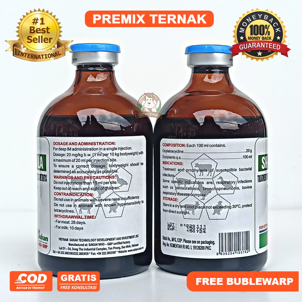 Hobi & Koleksi > Perawatan Kesehatan Hewan > Obat > SK TETRA LA 100ml - Anti bio tik hewan spektrum luas long acting - Seperti Limoxin La Vet oxy LA - Premixternak
