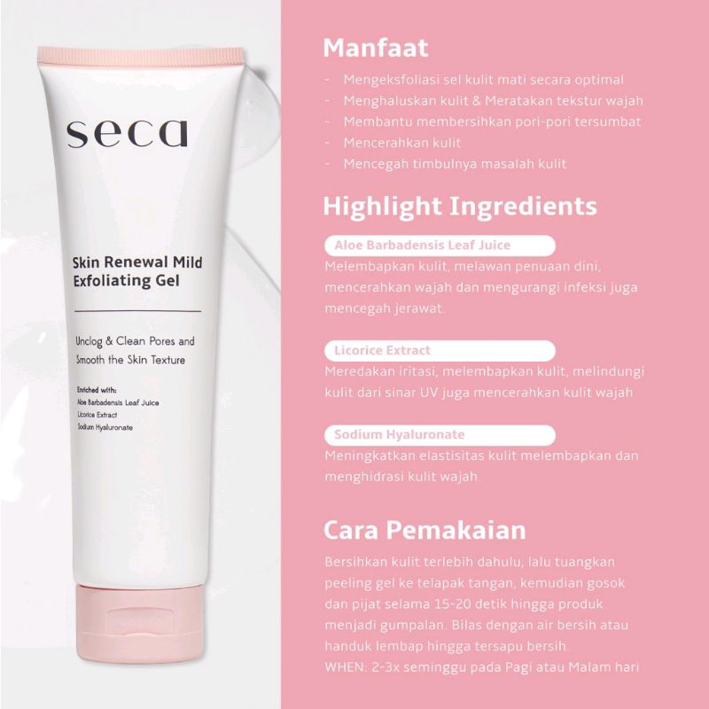 Gel eksfoliasi tanpa scrub yang ringan dan dapat membantu mengangkat kotoran berlebih dan sel kulit mati sehingga wajah lebih bersih, cerah, dan halus. Helps Exfoliate dead skin cells & Smooth skin for Healthy Glowing Skin
