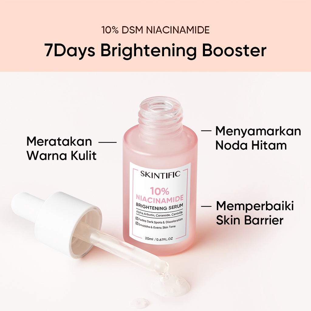 Hero Ingredients: 10% Royal DSM Niacinamide: Sama dengan niacinamide pada SK-II, adalah sebuah kandungan berkonsentrasi tinggi yang secara efektif mencerahkan kulit dengan cepat, mengontrol minyak berlebih, dan menyamarkan noda hitam. Dapat membantu mengatasi hiperpigmentasi, tekstur kulit yang kasar, kemerahan, dan melindungi skin barrier Alpha arbutin: Membantu niacinamid, mencerahkan kulit dari dalam Ceramide: Mengembalikan dan memperkuat skin barrier, dengan tetap menghidrasi kulit. Centella Asiatica: Menenangkan kulit