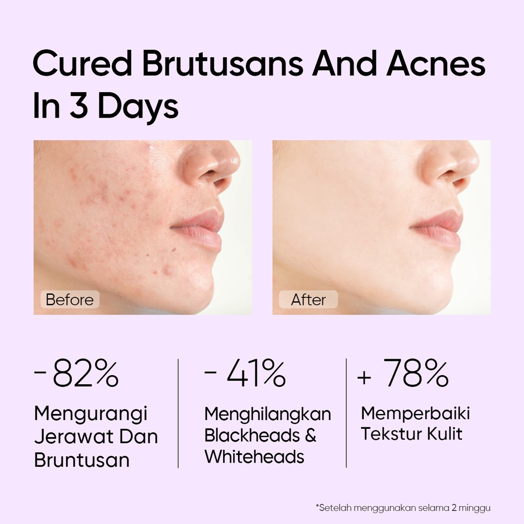 5% AHA BHA PHA Exfoliating Toner Ukuran: 80 ml No BPOM: NA11211200959 Manfaat: 1) Meredakan beruntusan & jerawat dengan cepat, 2) Membersihkan pori-pori & mengangkat sel kulit mati, membuat kulit lebih halus, 3) Menghilangkan blackhead dan whitehead, 4) Memperbarui sel-sel kulit dan mengurangi garis halus, 5) Mengembalikan fungsi alami kulit, dan membuat kulit lebih cerah. Hero Ingredients: 1). 2% AHA, 2%BHA, 1% PHA 2) Kompleks Probiotik 3). Niacinamide Cara pemakaian: 1) Gunakan 2-3 kali/minggu, jika kamu baru menggunakan toner eksfoliasi. Disarankan menggunakan kapas. 2) Gunakan tabir surya jika menggunakan toner eksfoliasi di siang hari. 3) Tingkatkan frekuensi penggunaan sehari-hari, ketika sudah terbiasa dengan toner eksfoliasi.
