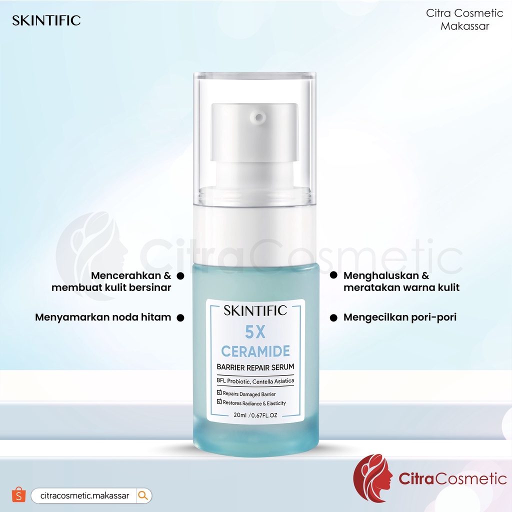 SKINTIFIC 5X Ceramide Barrier Repair Moisture Gel Moisturizer yang menggabungkan 3 kandungan aktif Ceramide, Hyaluronic Acid, dan Centella Asiatica, untuk mengatasi permasalahan skin barrier yang rusak seperti jerawat, kemerahan, kulit bertekstur, dan juga kulit kering secara cepat namun tetap aman untuk skin barrier. Diperkaya dengan teknolog 5X Ceramide, yang merupakan gabungan 5 jenis Ceramide untuk melembabkan secara mendalam dan memperkuat lapisan kulit. 5X Ceramide ini membantu untuk memperbaiki dan melindungi skin barrier dengan menjaga kelembaban dan melindungi kulit dari faktor eksternal.