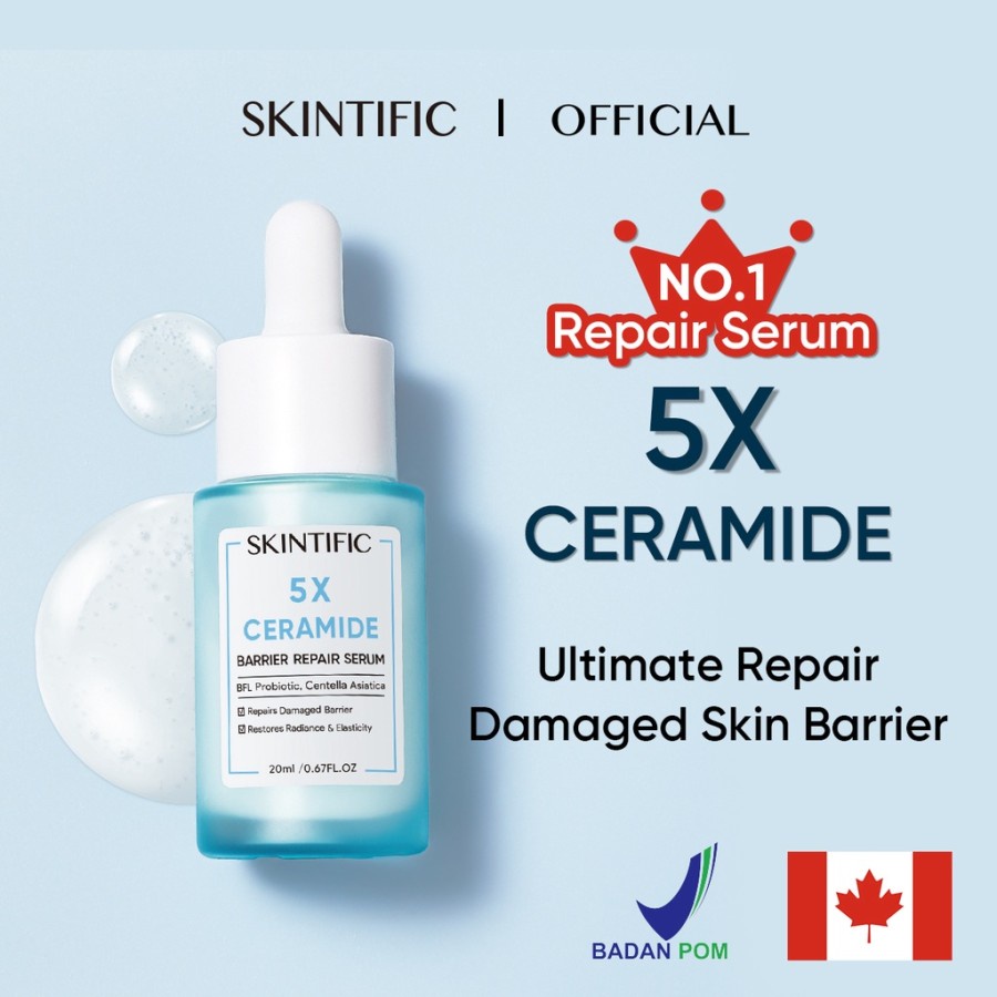 SKINTIFIC 5X Ceramide Barrier Rrpair Serum Serum yang diformulasikan untuk mengoptimalkan perbaikan skin barrier yang rusak. Mengkombinasikan 5 Jenis Ceramide yang berbeda untuk menjaga dan mengembalikan kondisi skin barrier agar kembali sehat. Ditambah kandungan BFL probiotik yang dapat mencegah dan merawat inflamasi ataupun permasalahan kulit seperti kemerahan dan jerawat. Untuk kondisi skin barrier yang terganggu, kandungan Centella Asiatica pada serum ini juga dapat menenangkan dan mempercepat penyembuhan kulit