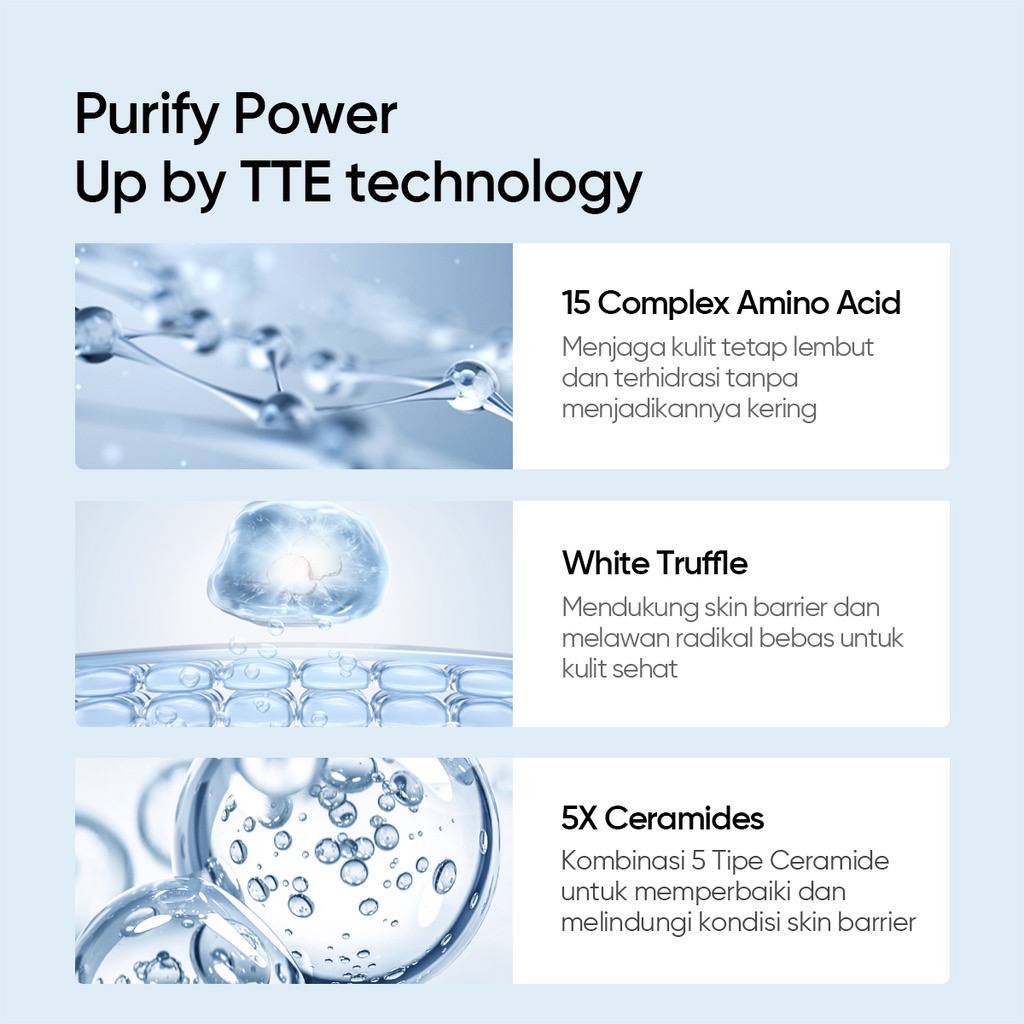 Pembersih wajah yang nyaman sekaligus dapat menjaga skin barrier. Diformulasikan dengan bahan alami menggunakan asam amino dengan molekul mikro dengan daya bersih yang sempurna sampai ke pori-pori namun lembut untuk kulit. Busa yang halus seperti sutra, mudah dihasilkan dalam satu kali tekan, membersihkan kulit secara sempurna dari kotoran dan minyak berlebih. Dilengkapi dengan 5X Ceramides dan White Truffle untuk mengunci kelembaban dan merawat kulit tetap lembut. Cocok digunakan setiap hari, pagi dan malam hari