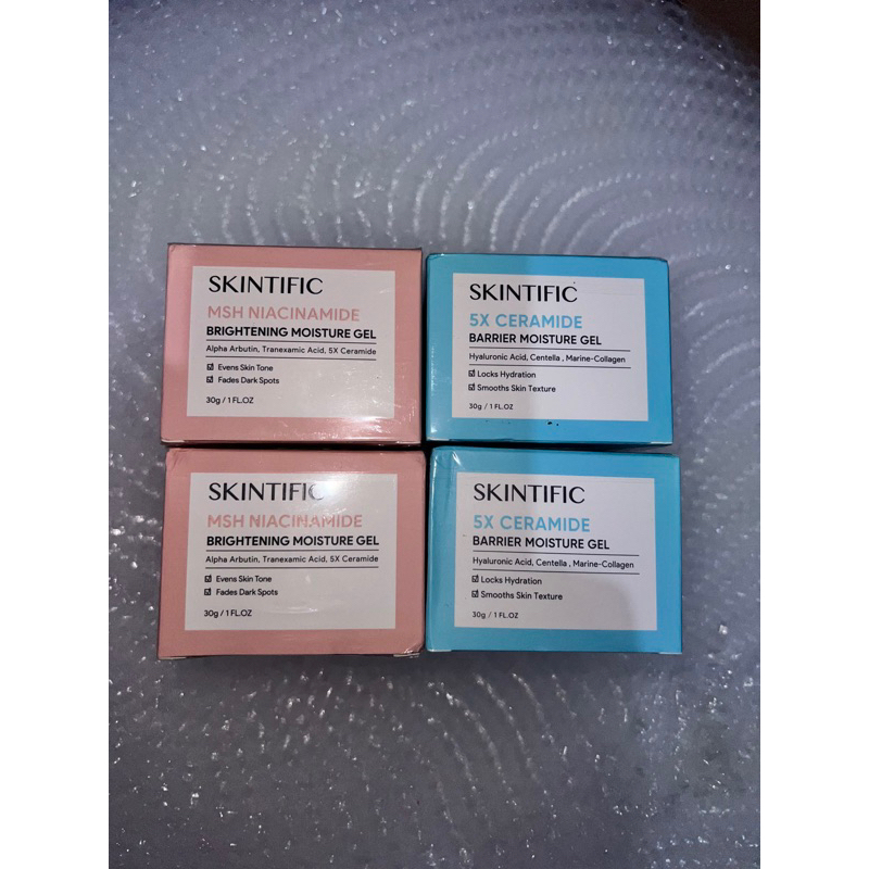 Skintific MSH Niacinamide Brightening Moisture Gel MSH Niacinamide Brightening Moisture Gel dengan tekstur seringan udara, dapat menyerap dengan cepat dan mengontrol minyak dalam 24 jam. Diformulasikan dengan Novel MSH Niacinamide ekslusif SKINTIFIC yang dikombinasikan dengan dua bahan pencerah yang ringan dan paling efektif yaitu Alpha Arbutin dan Tranexamic Acid, yang mampu mencerahkan dengan signifikan dalam waktu 14 hari. MSH Niacinamide terbukti secara klinis 10 kali lebih efektif dibandingkan niacinamide biasa dalam mengurangi hiperpigmentasi, meredakan kemerahan dan memperbaiki elastisitas kulit. Diperkaya dengan Centella Asiatica dan 5X Ceramide, tidak menyebabkan iritasi serta memberikan efek menenangkan kulit sekaligus memperbaiki dan menjaga skin barrier.