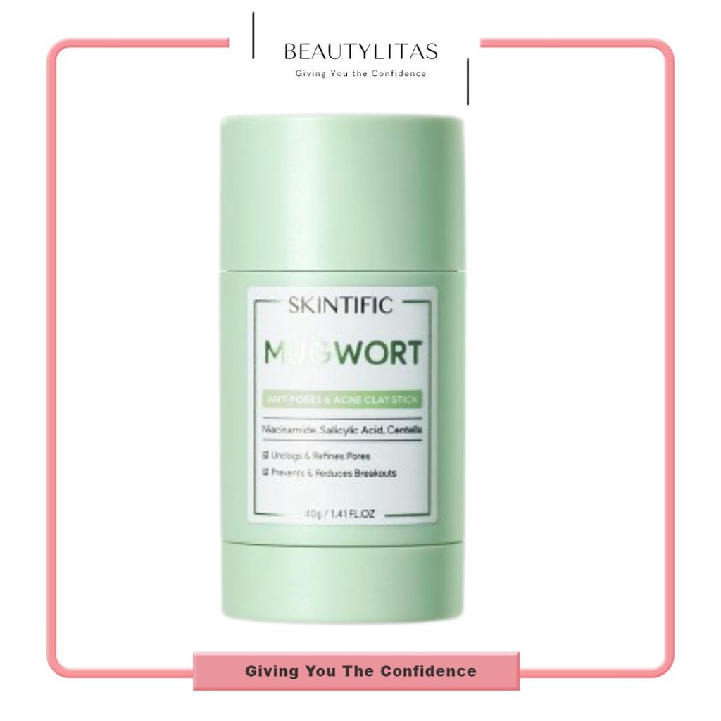 SKINTIFIC Mugwort Acne Clay Stick 40g Diformulasikan dengan Mugwort, ingredients yang populer di Korea untuk mengobati jerawat. Dilengkapi dengan Niacinamide, Salicylic Acid, dan juga Centella yang dapat mengontrol produksi minyak, membersihkan pori-pori secara mendalam, membersihkan komedo, dan menenangkan kulit yang sedang meradang. Mudah digunakan dengan bentuk stick, berfokus untuk menenangkan kulit dan meredakan kemerahan, membersihkan pori dan merawat kulit berjerawat, mengontrol minyak dan menjaga skin barrier. Coverage yang baik, dengan 1 usapan dapat menutup satu area pada wajah. Hasil penggunaan bruntusan berkurang, pori-pori mengecil, warna kulit lebih cerah dan merata.