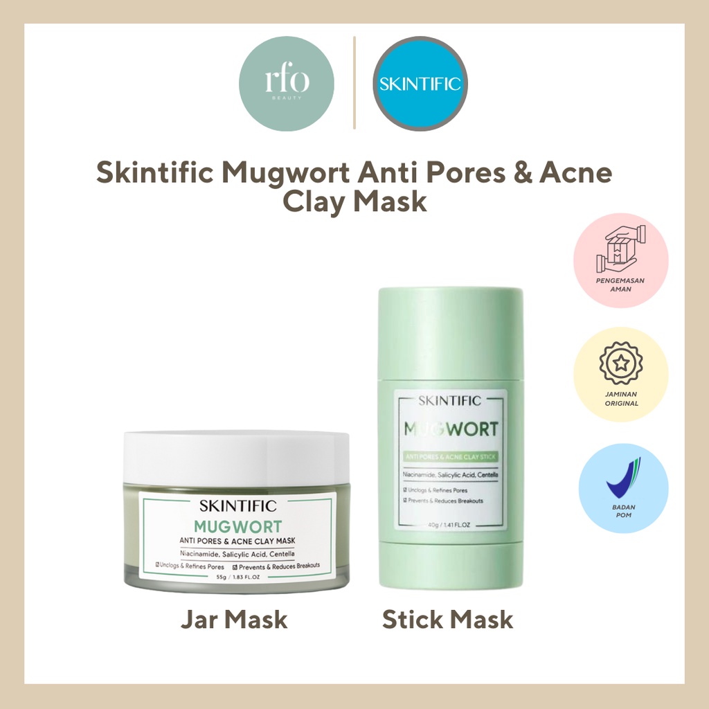 SKINTIFIC Mugwort Anti Pores & Acne Clay Mask mengandung ekstrak Mugwort dengan kualitas terbaik untuk melawan breakout agar kulit lebih cerah dan ceria.