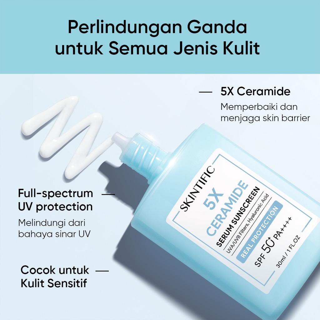 Sunscreen dengan kandungan utama 5X Ceramide yang dapat memperbaiki dan mengembalikan skin barrier. Dilengkapi UV Filter jenis terbaru yang telah dipatenkan oleh BASF Germany (Tinosorb S/M) yang dapat melindungi kulit dari sinar UVA & UVB serta Blue Light, dengan SPF 50+ PA++++ tanpa mengiritasi kulit. Memiliki tekstur ringan yang menyerap dengan cepat, tidak berminyak & memberikan hasil akhir yang melembabkan. Tambahan kandungan Hyaluronic Acid yang dapat mengembalikan dan mengunci kelembaban pada kulit